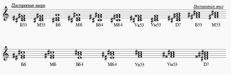 Построить ВСЕ аккорды (вверх и вниз) от ноты до-диез (#)