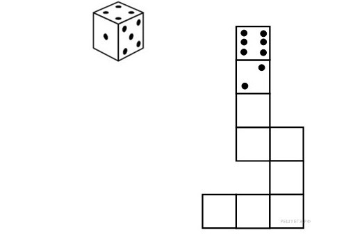 Игральный кубик прокатили по столу. На рисунке изображён след кубика. Отметьте на рисунке место, в котором грань с тремя точкой соприкасалась со столом.