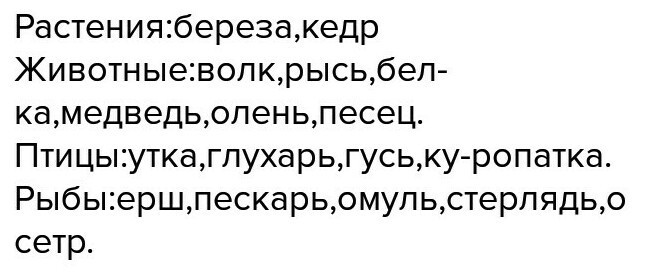 Все географические названия,названия птиц,названия растений,названия рыб? Из произведения "Васюткино озеро"