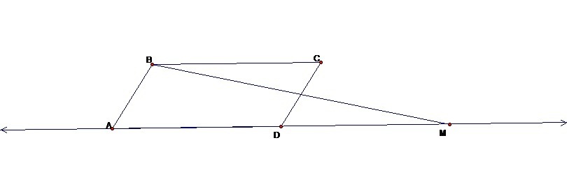 На продолжении стороны AD за точку D параллелограмма ABCD отмечена точка M так, что AD=MD. Докажите, что параллелограмм ABCD и треугольник ABM равновелики.
