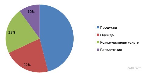 На диаграмме показаны отчет о тратах семьи за неделю. Определите, сколько было всего потрачено денег, если на продукты было истрачено 23000 рублей?