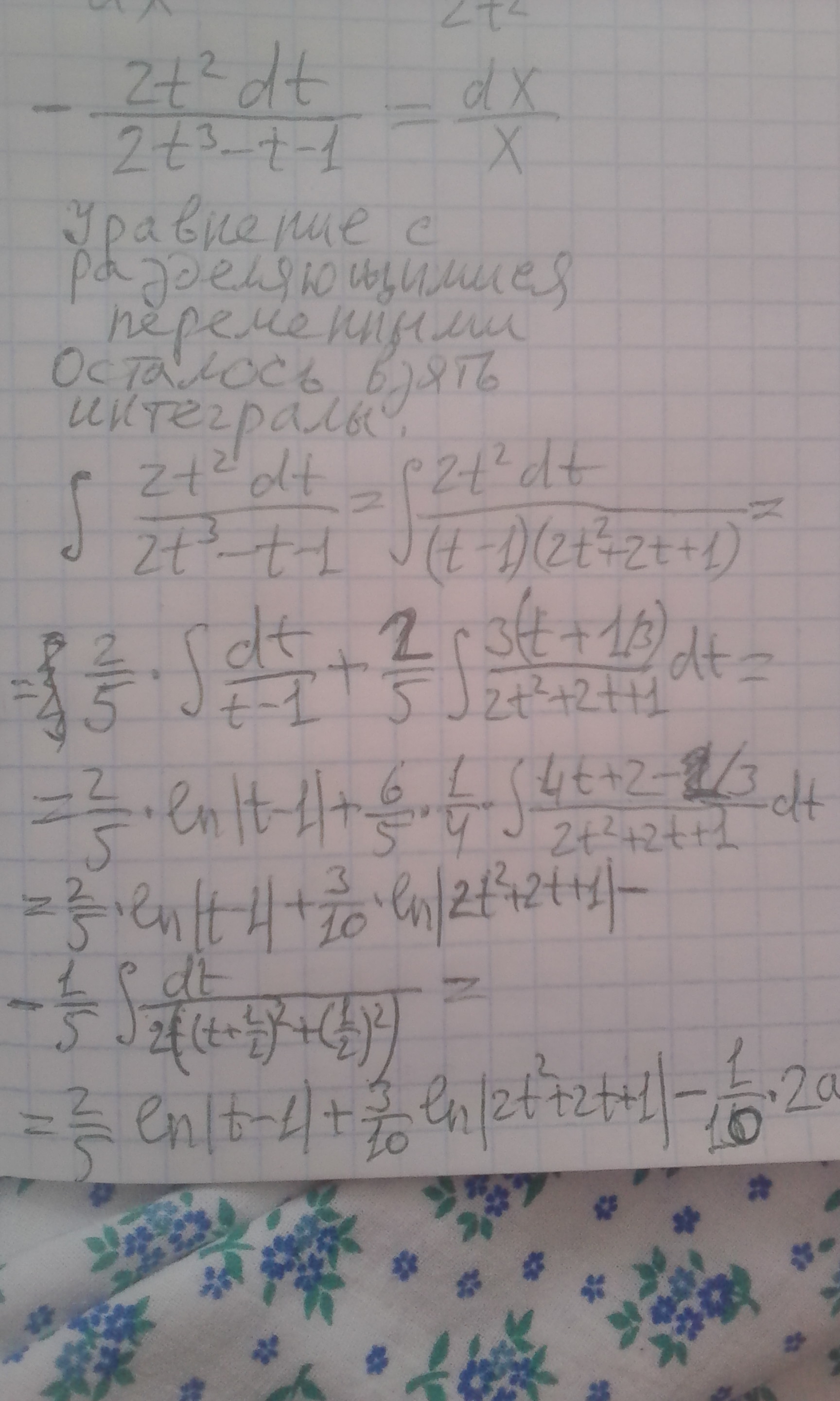 2/5*ln |t-1| + 3/10*ln |2t^2+2t+1| - 1/5*arctg (2t+1) = -ln |x| + C