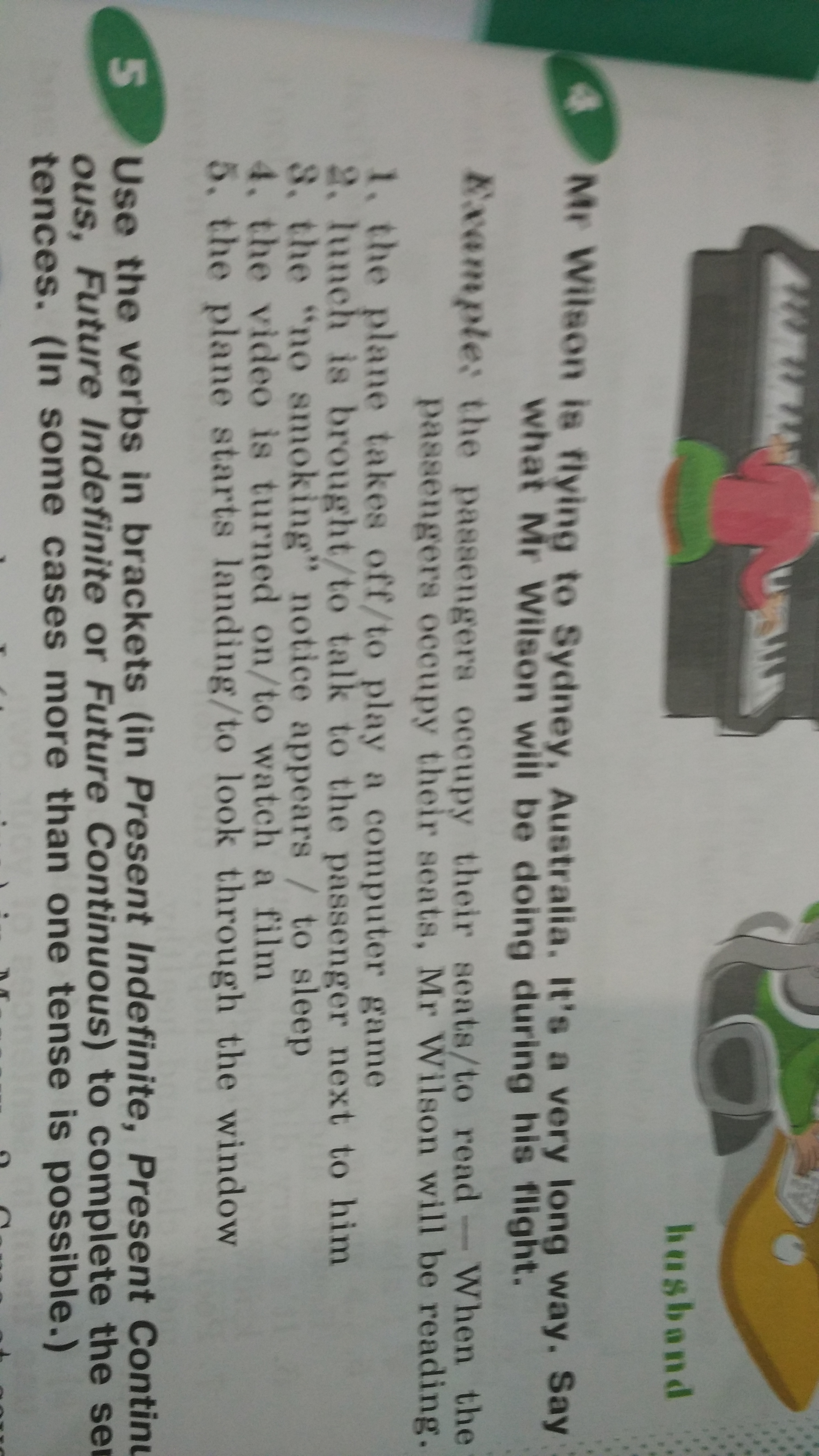 1. When the plane takes off, Mr Wilson will be playing computer game.
