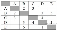 Между населёнными пунктами А, В, С, D, Е построены дороги, протяжённость которых (в километрах) приведена в таблице: