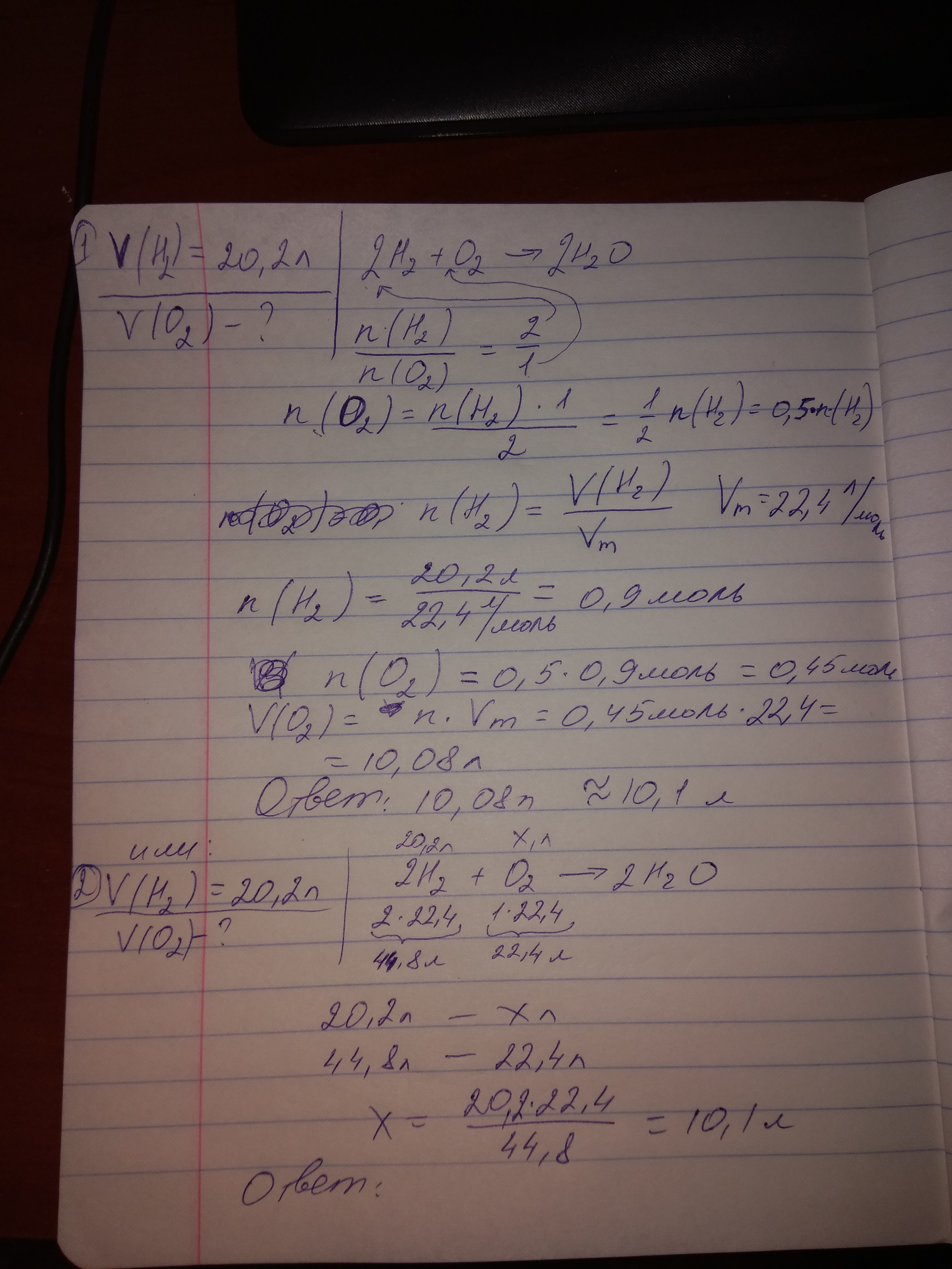 сдающие егэ по химии помогите откуда о,5 ? вычислите обьем кислорода, который необходим для окисления 20,2 водорода .и решение следующие O2+2H2=2H2O V кислорода равно 0,5×V водорода =10,1и что это за формула такая про обьем и откуда 0,5 ????