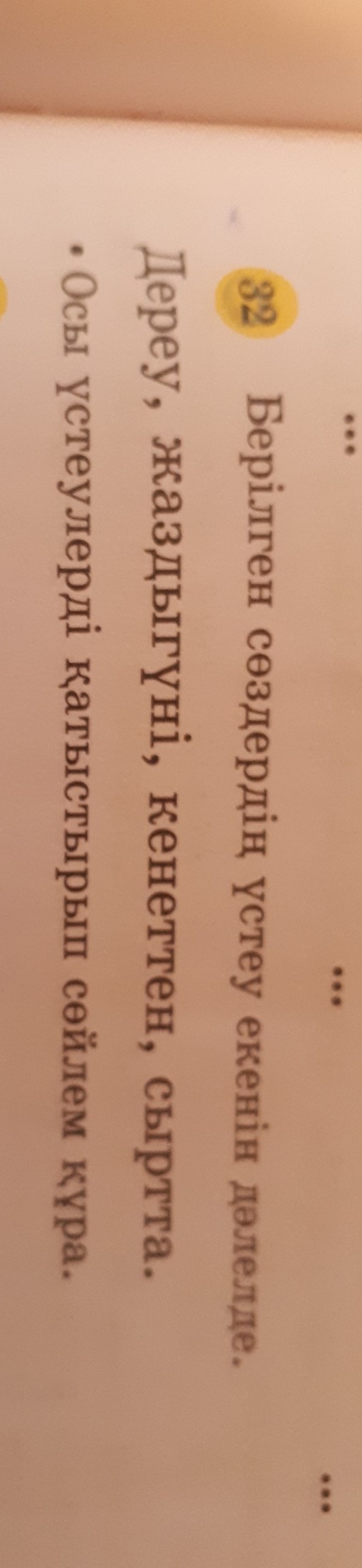 дереу-үстеу. өйткені ол қалай ? деген сұраққа жауап беріп оның сын бейнесін білдіріп тұр . жаздыгүні-үстеу . өйткені ол мезгілін білдіріп қашан деген сұраққа жауап беріп тұр . кенеттен - үстеу . өйткені ол қалай деен сұраққа жауап беріп оның сынын білдіріп тұр . сыртта ол үстеу . өйткені ол оның мекенін білдіріп тұр