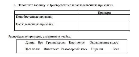 Наследственные признаки: Цвет кожи, цвет волос, группа крови, разговорный язык, Длина