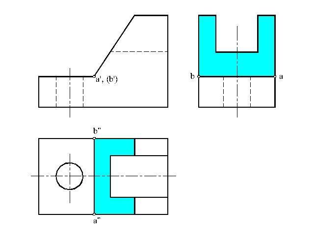 По заданным видам постройте 3 вид проекции. Выделите цветными карандашами проекции грани К найдмте на всех видах проекции ребра АВ и вершины С
