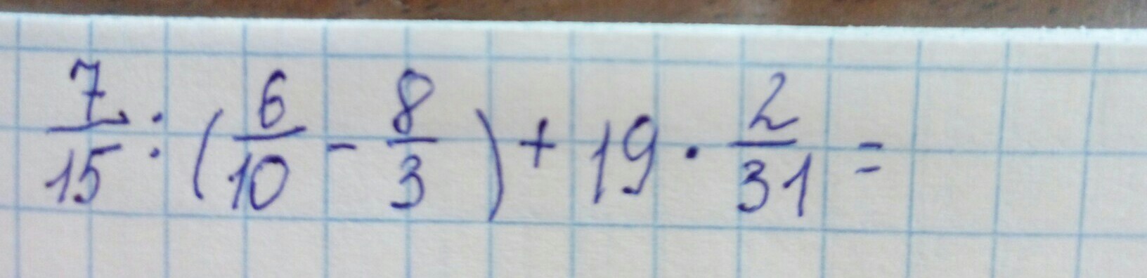 7/15 : (18/30 - 80/30) + 19 * 2/31