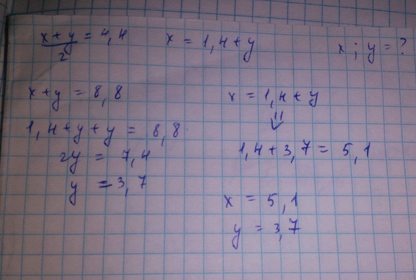 средние арифметическое двух чисел 4,4. Найдите эти числа, если одно из них на 1,4 больше другого