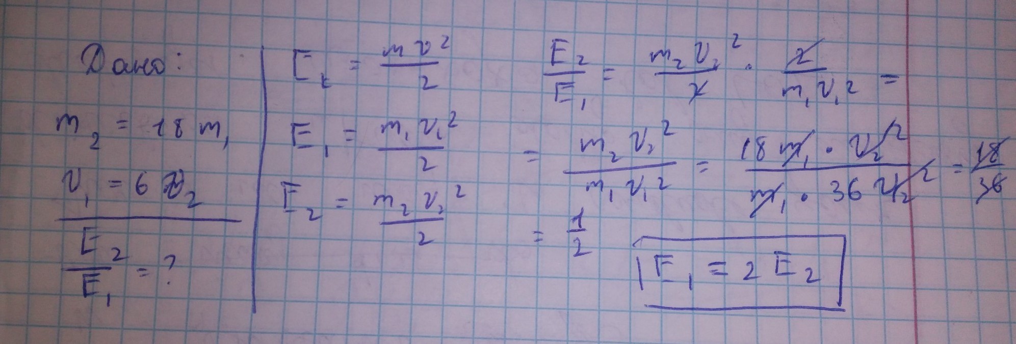 Масса грузового транспорта больше массы легкового автомобиля в 18 раз, но скорость грузового транспорта меньше скорости легкового автомобиля в 6 раз.Сравните их кинетические энергии.
