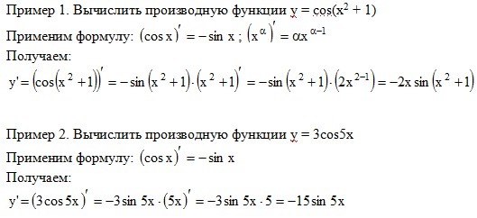 Пример 1. Вычислить производную функции y = cos(x2 + 1)