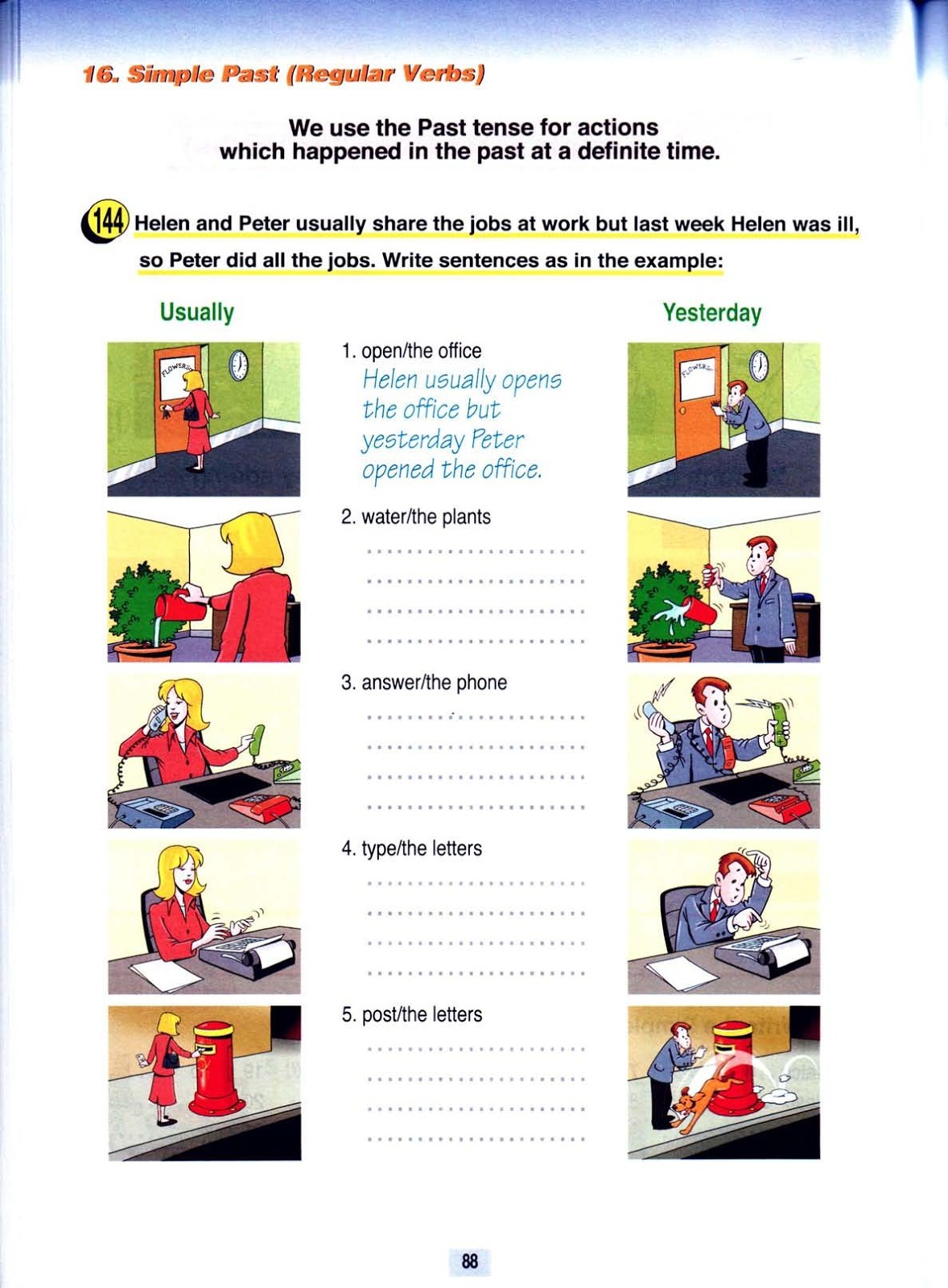 2.Helen usually waters the plants but yesterday Peter watered the plants.