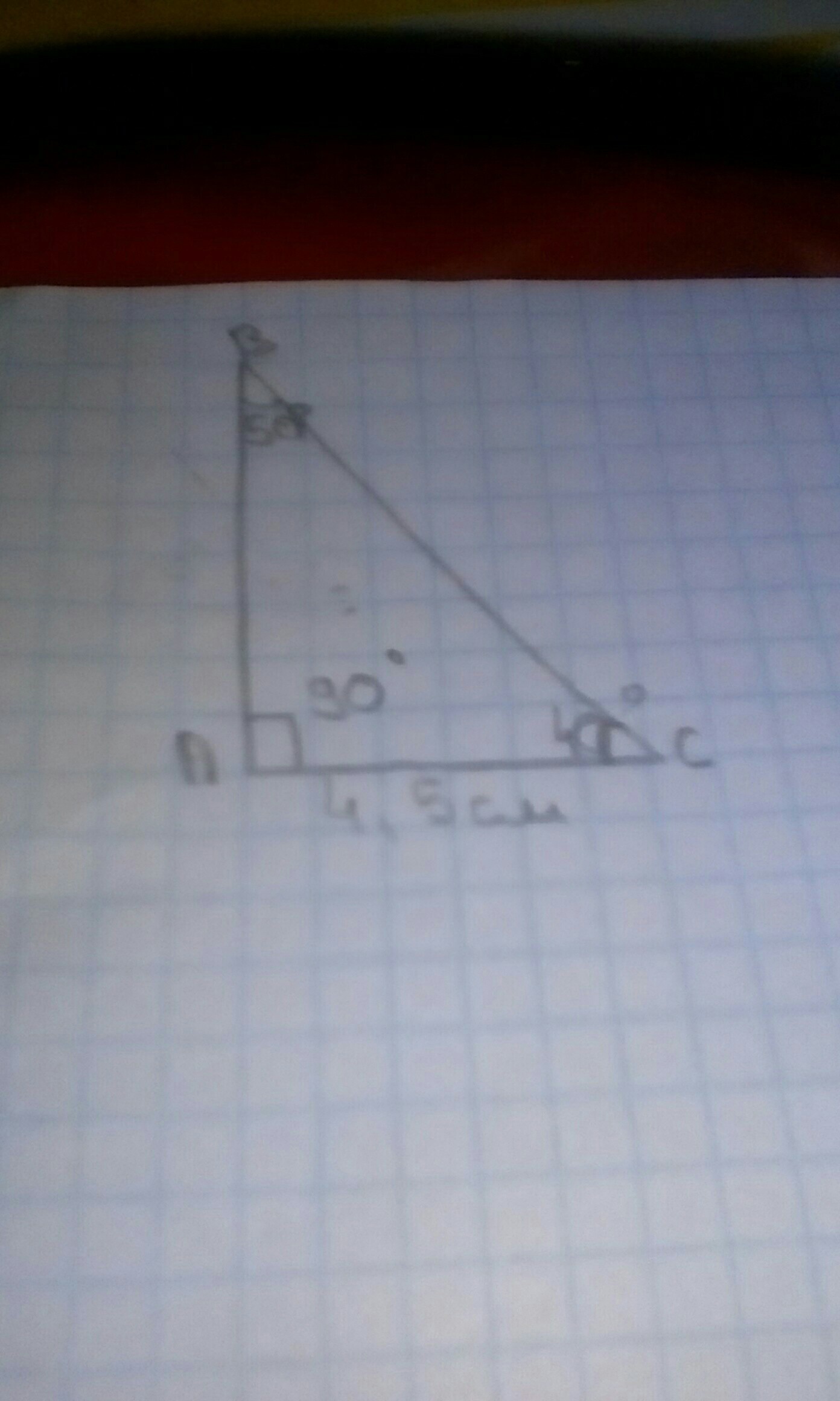 Постройте треугольник АВС если угол А равняется 90 градусов угол С равняется 40 градусов и АС равняется 4,5 см