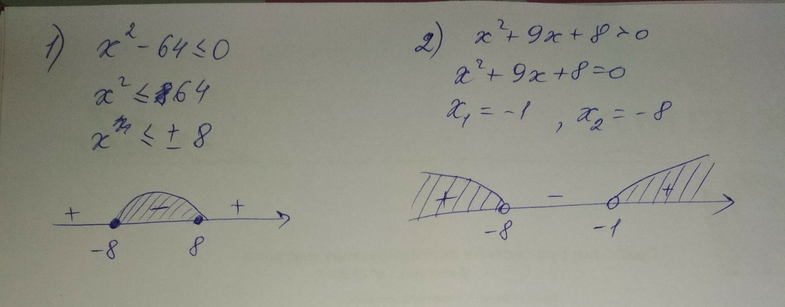 1) х²≤64