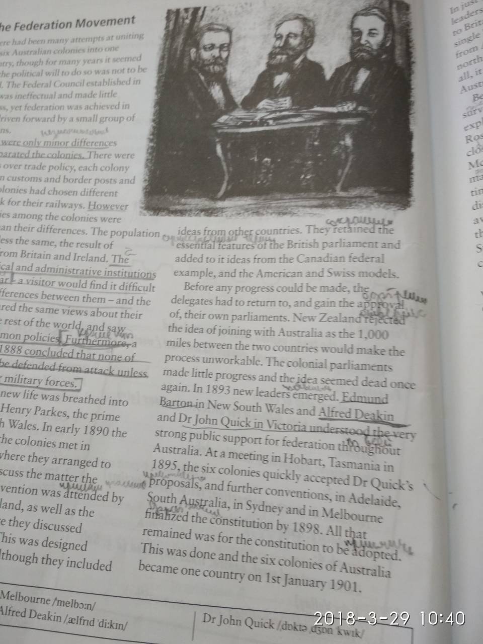 Australia became one country the 1st January 1901. Until then it consisted of 6 colonies. There were several reasons for the colonies joining togather. They are cultural reason, institutions and defensive reason.