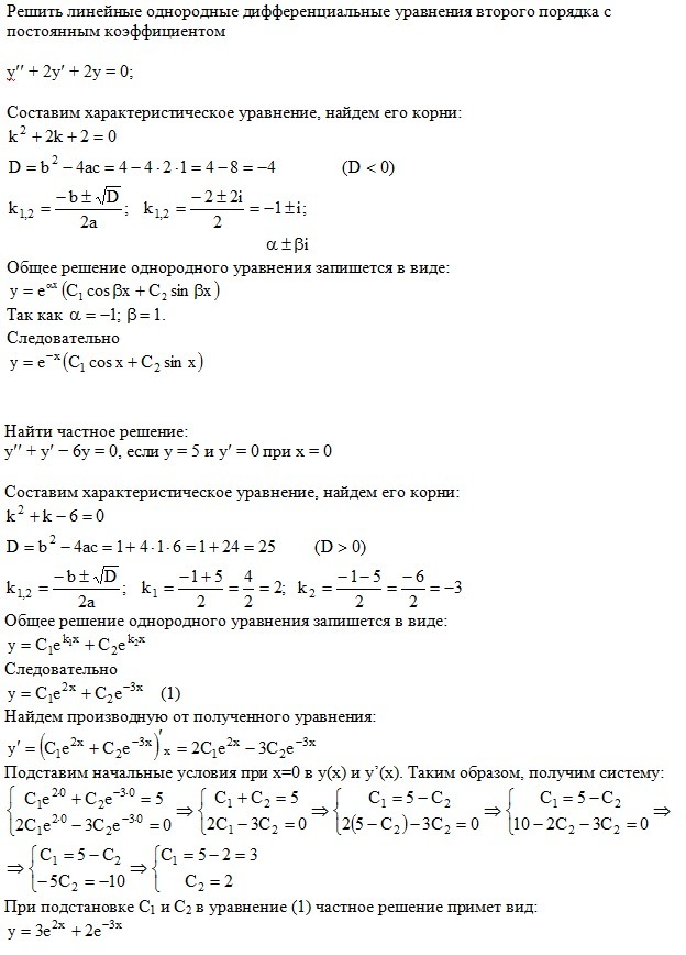 Решить линейные однородные дифференциальные уравнения второго порядка с постоянным коэффициентом