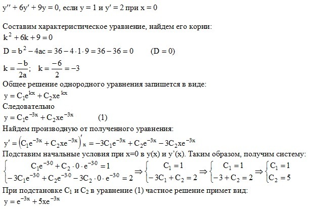y''+6y'+9y=0 если y=I и y'=2 при x=0;