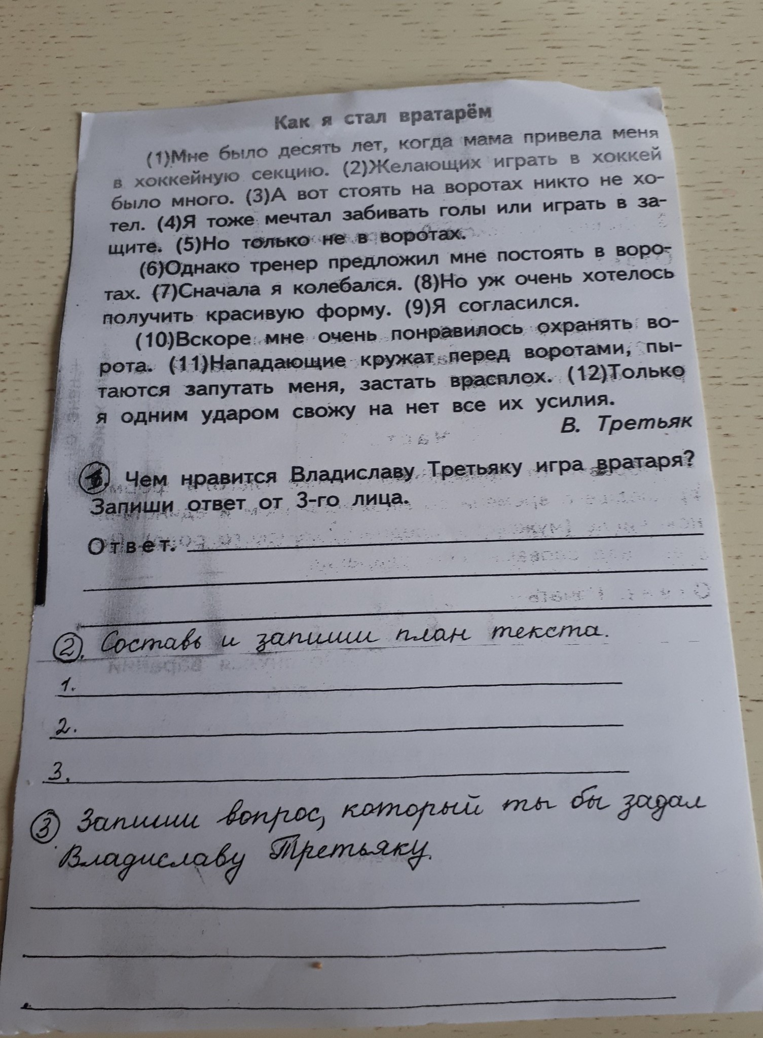 ему нравилось охронять ворота план 1 мечта 2 вратарь 3 защитник как вы научились так хорошо игать в хохей