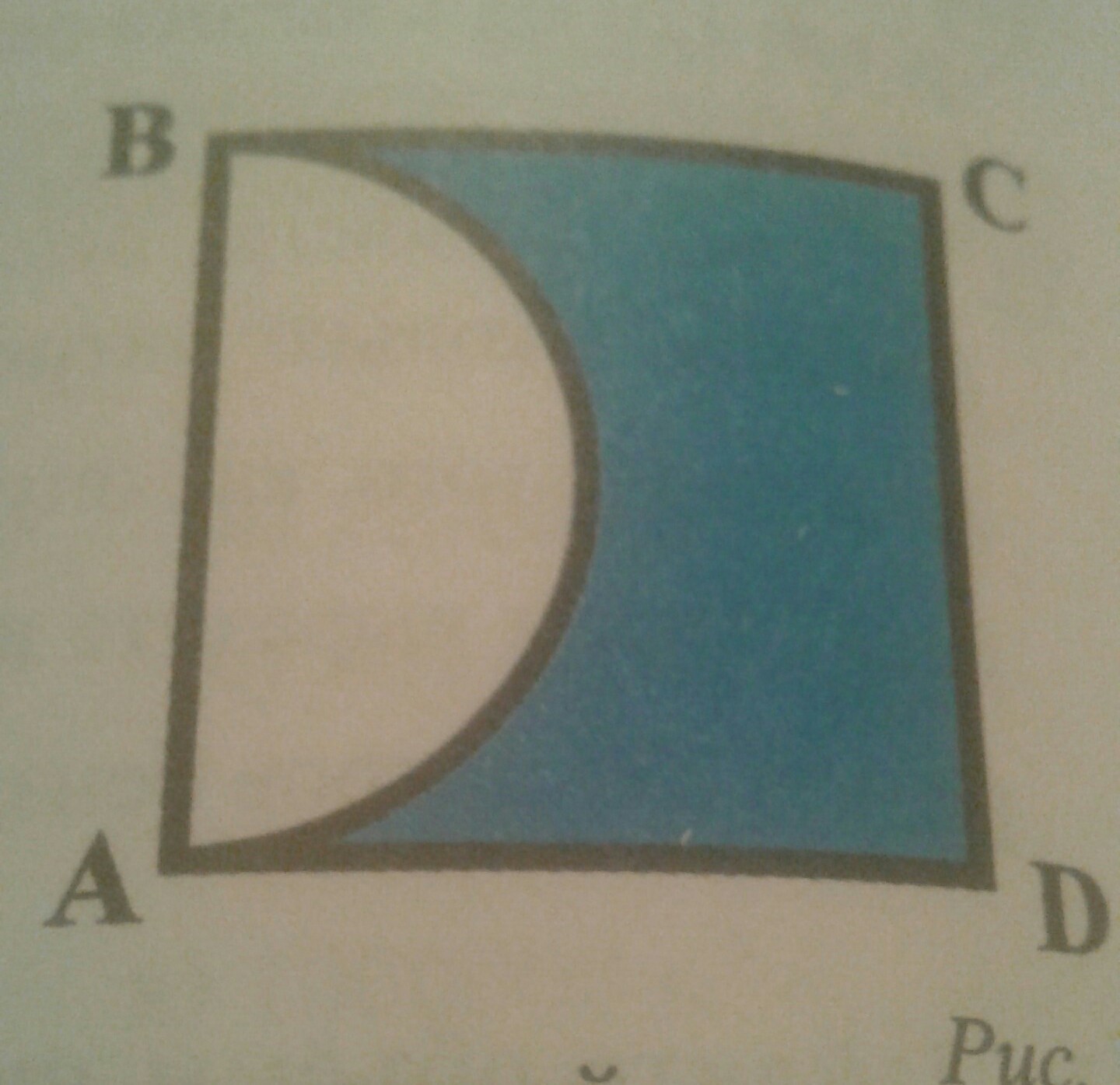 найдите плошадь закрашеной части на рисунке 1 если сторона квадрата 3 см радиус полу кружности равен 15 мм п=3
