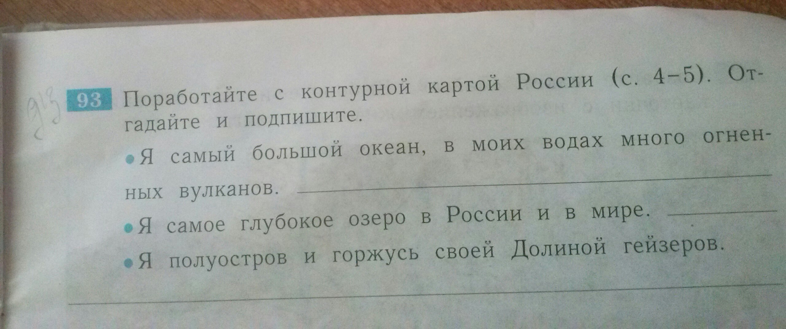 1. Тихий океан 2. Озеро Байкал 3. полуостров Камчатка