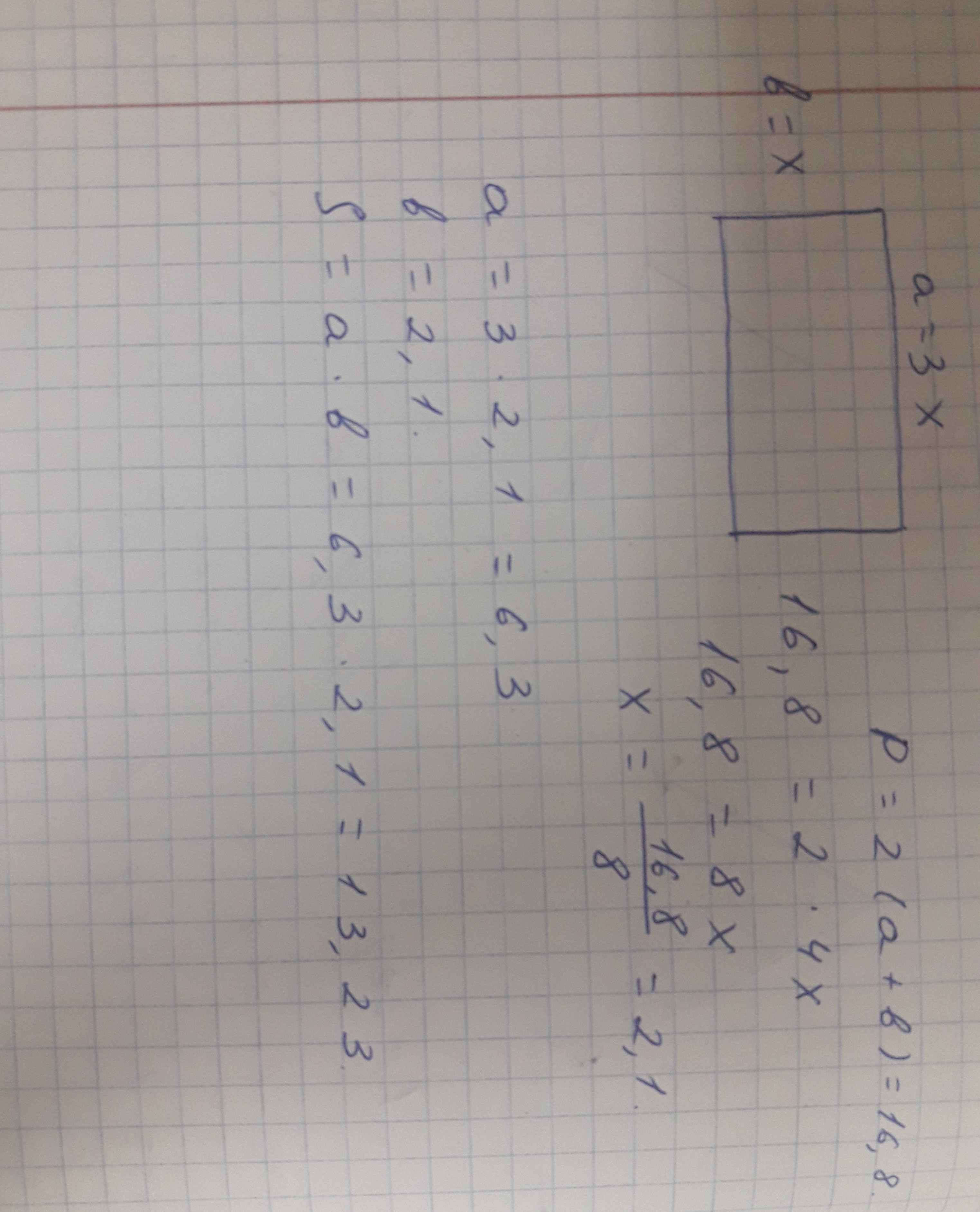Егер ені ұзындығынан 3 есе кем ал периметрі 16,8 см - ге тең болса,онда тіктөртбұрыштың ауданын табыңдар