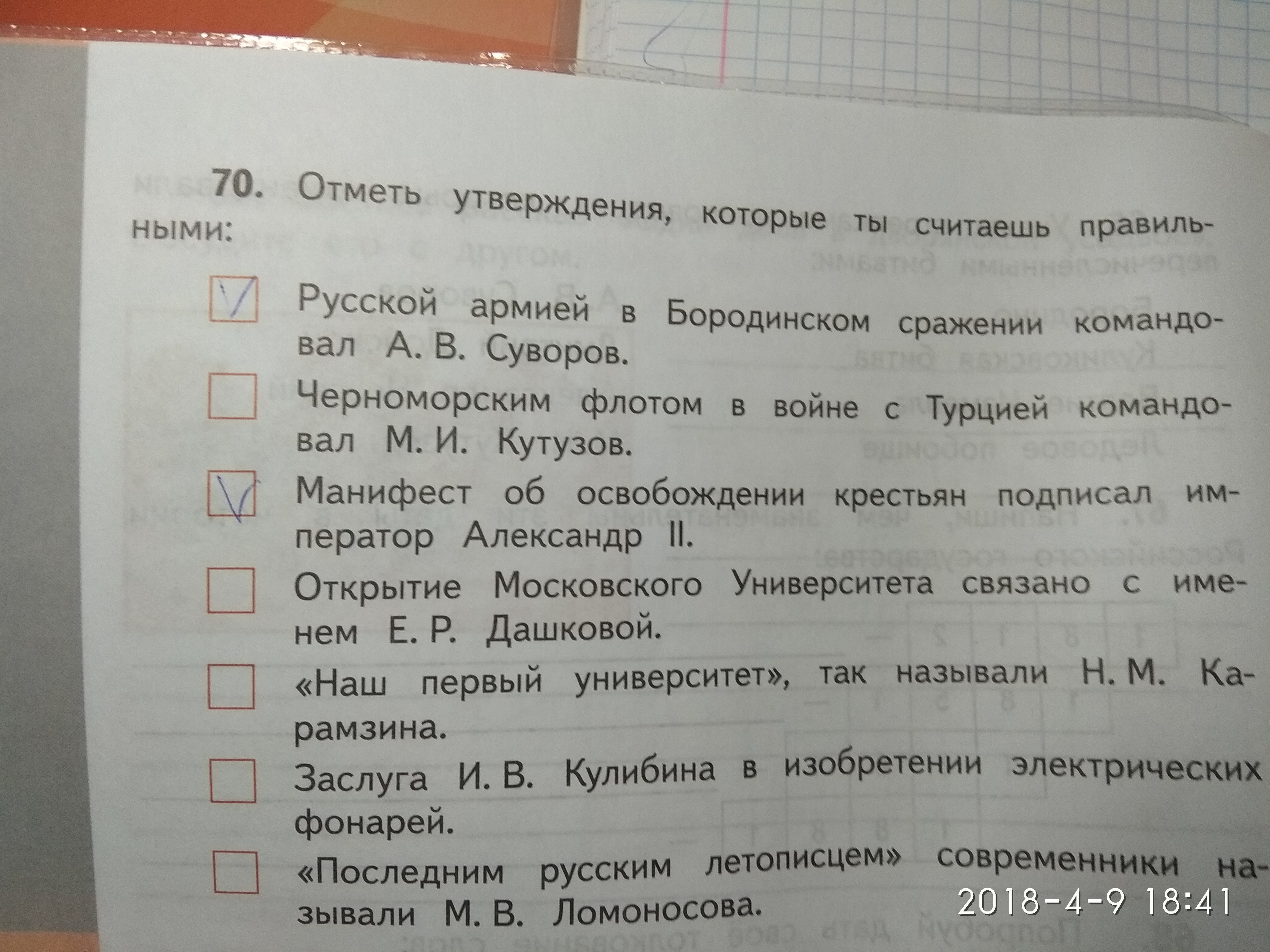 №70 Одно верное утверждение:3) Манифест об освобождении крестьян подписал император Александр II в .1861 году.