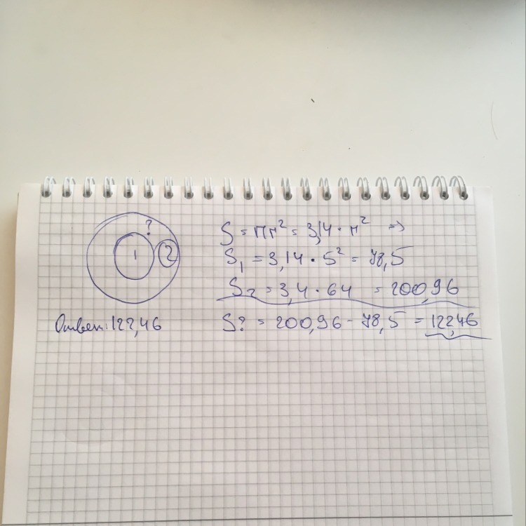 Найдите площадь кольца,расположенного между двумя окружностями , имеющими общий центр , радиусы которых равны 5 см и 8 см