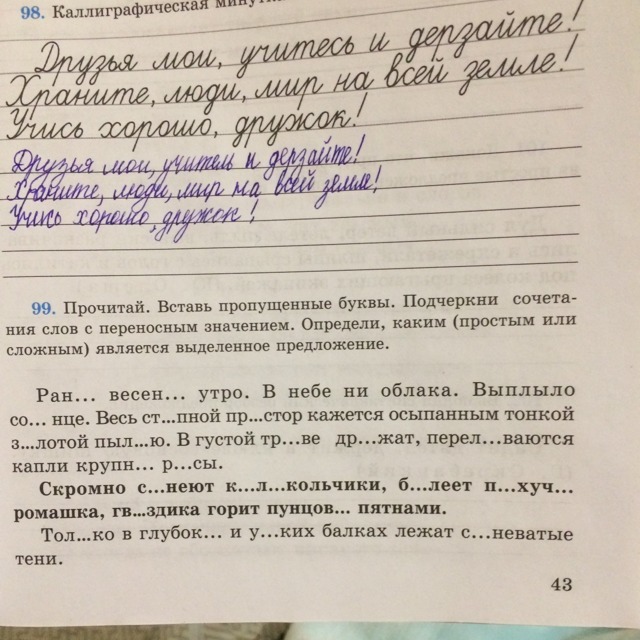 Скромно сИнеют кОлОкольчики, бЕлеет пАхучАЯ ромашка гвоздикагорит пунцовЫми пятнам. (сложное)