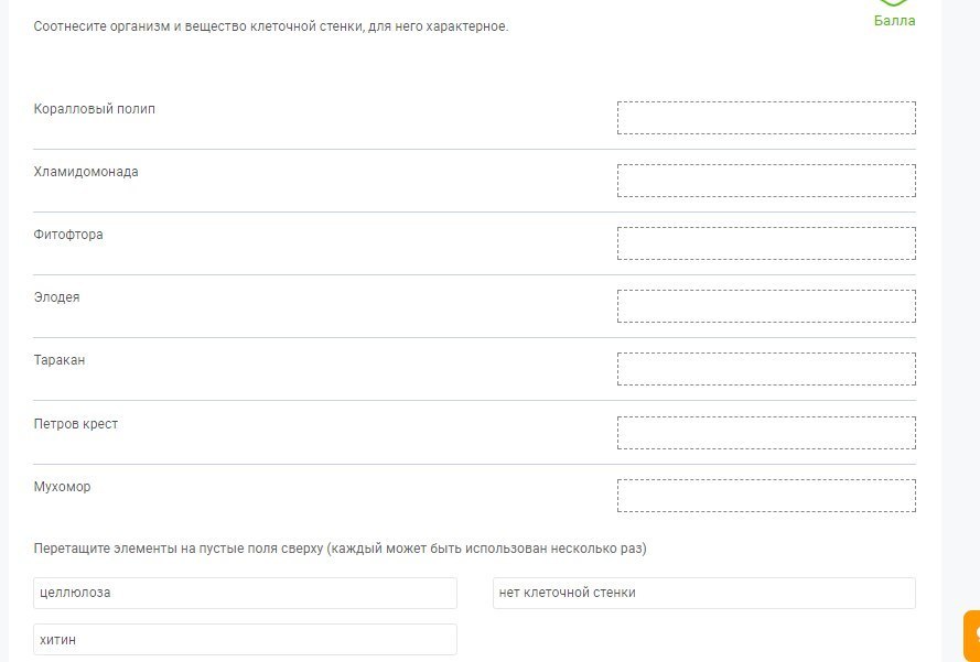Соотнесите организм и вещество клеточной стенки, для него характерное.