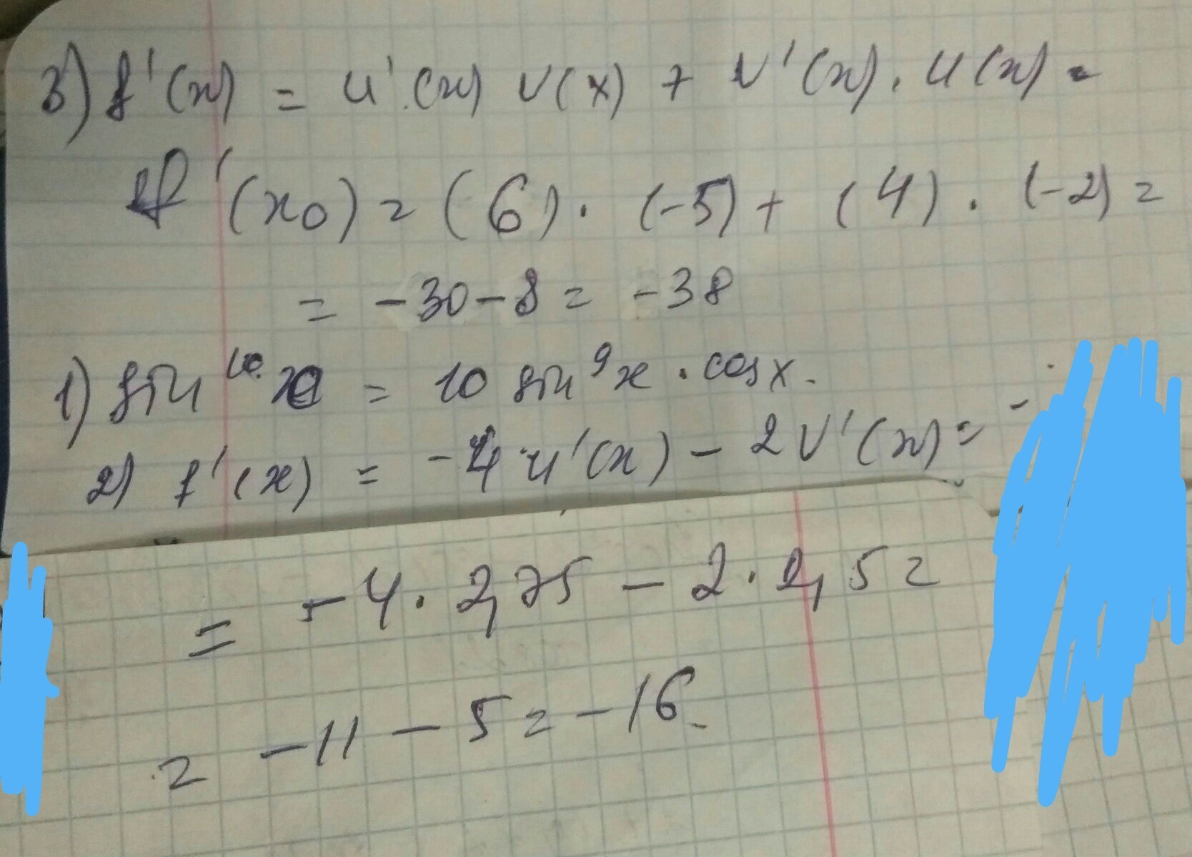 1) u'(x0)=2,75 и v'(x0)=2,5;