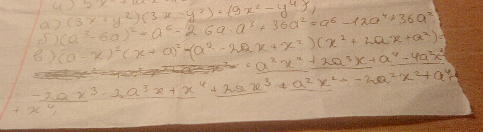 В) (a^2-x^2)^2= a^4-2a^2x^2+x^4