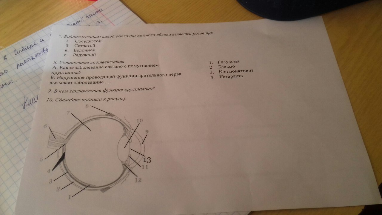 10. 1-сетчатка. 3-сосудистая оболочка 2-склера. 8-мышцы