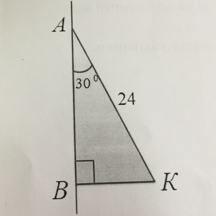 1) Т к треугольник ABk - прямоугольный ( угол АБК - 90) , а угол БАК -30, то БК=0.5АК( как катет лёд против угла в 30 градусов) БК=0.5•24=12
