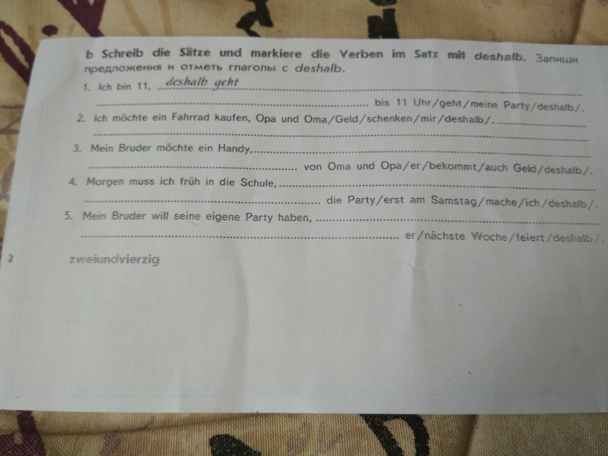 2. ..., deshab schenken mir Opa und Oma Geld.