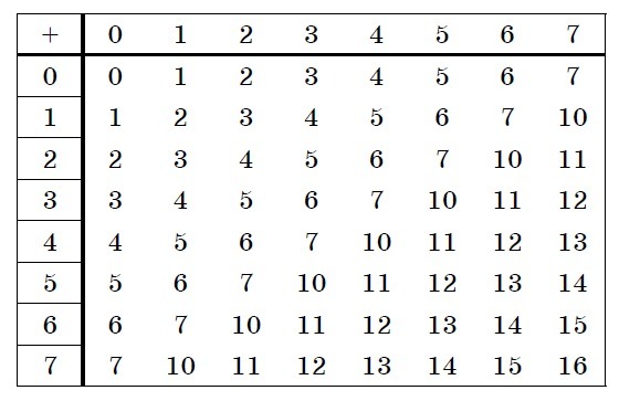 На картинке таблица сложения в восьмеричной системе