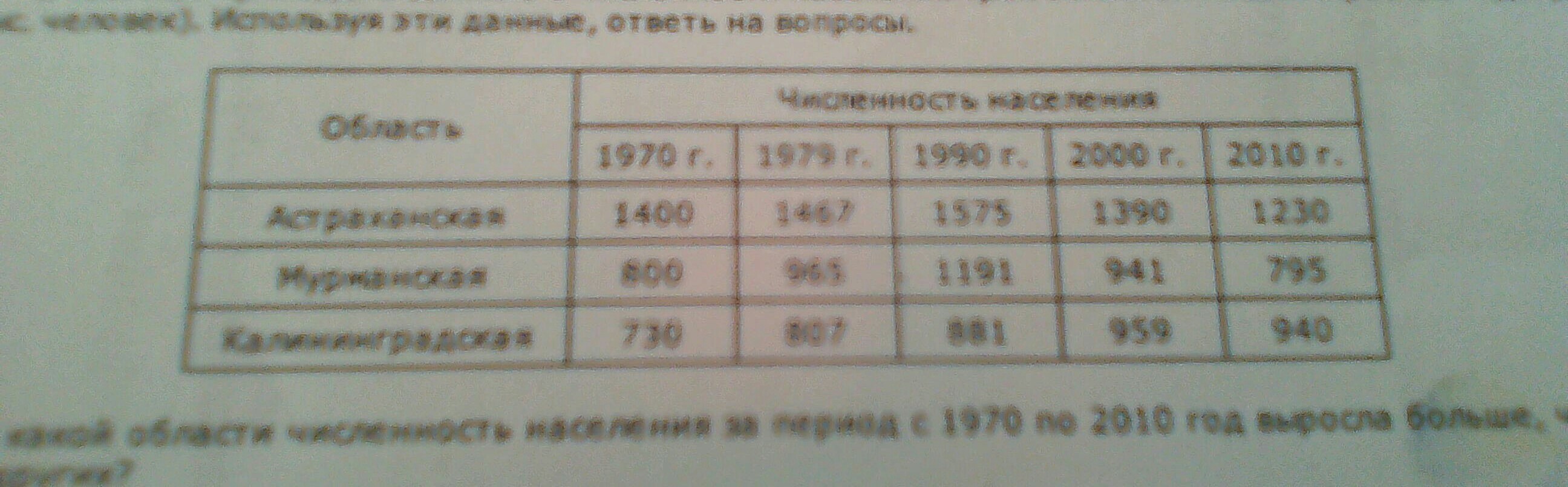 в таблице приведены данные о численности населения трёх областей России в разные годы( в тыс.человек). используя эти данные, ответь на вопрос