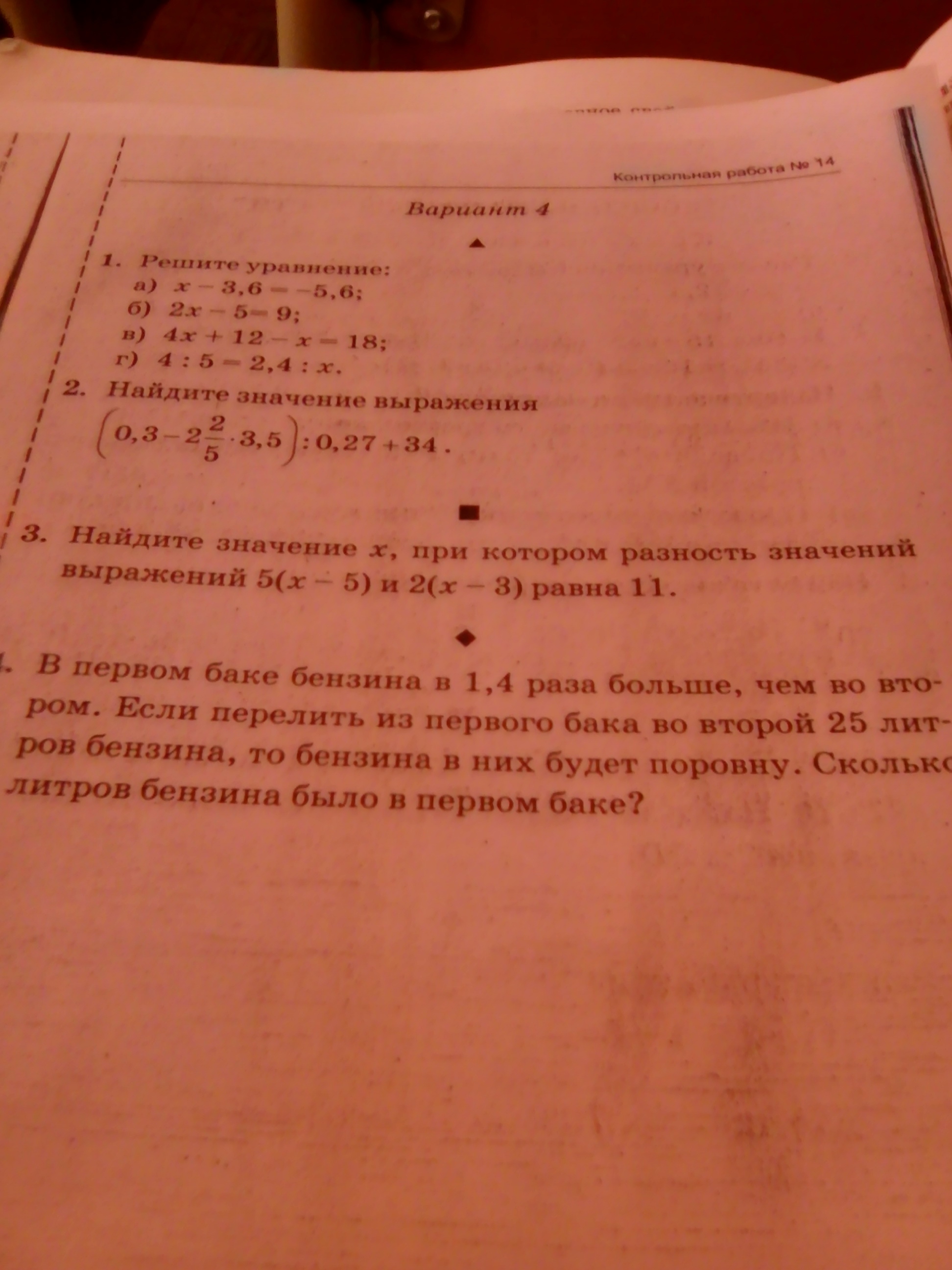 Х= 125 л - во втором баке, тогда в первом 1,4 • 125= 175 л бензина