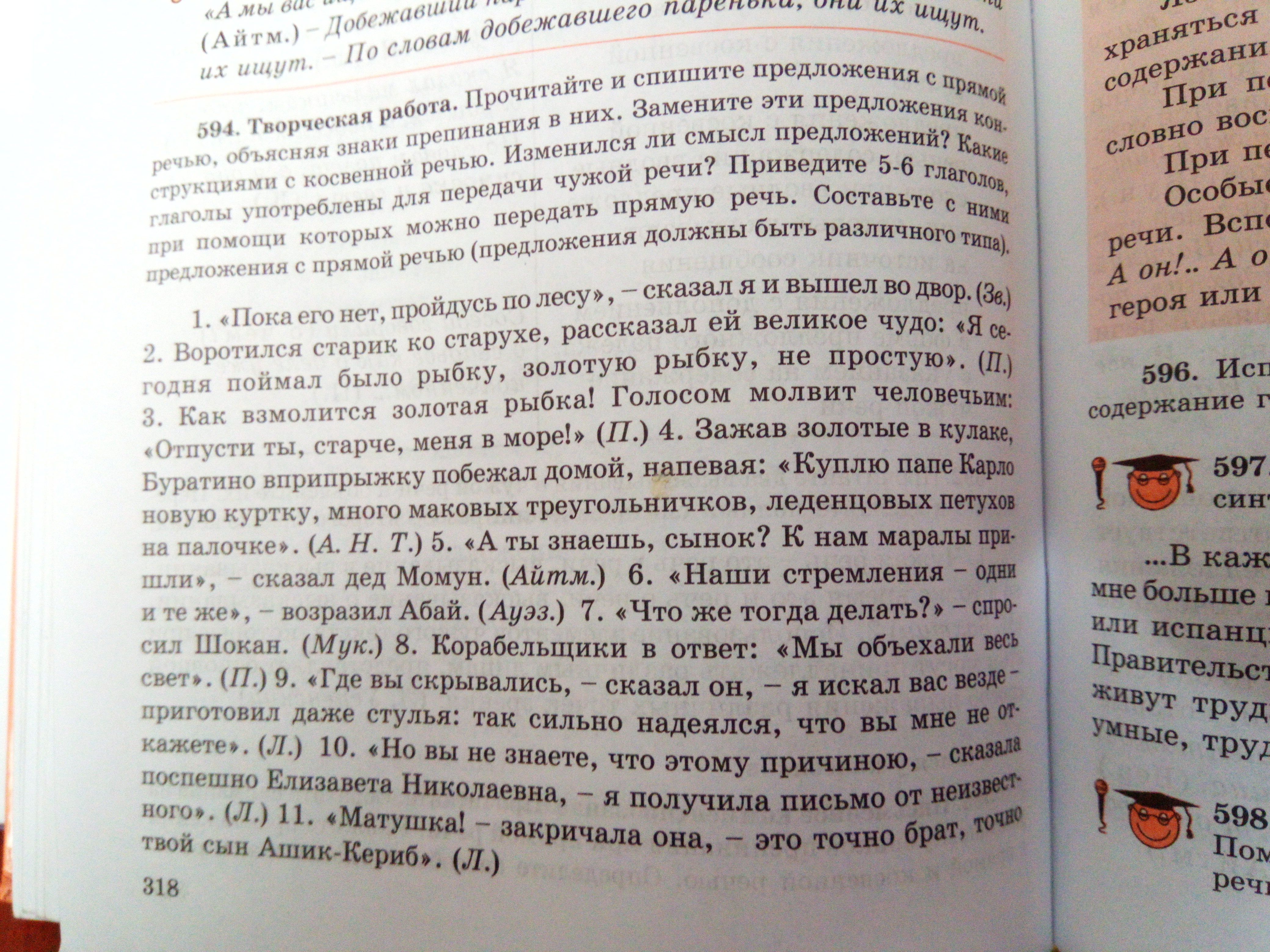Прочитайте и спишите предложения с прямой речью, объясняя знаки препинания в них. Замените эти предложения конструкциями с косвенной речью. Изменился ли смысл предложений? Какие глаголы употреблены для передачи чужой речи? Приведите 5-6 глаголов, при помощи которых можно передать прямую речь. Составьте с ними предложения с прямой речью (предложения должны быть различного типа).