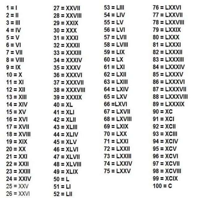 II, III, IV, VI, VII, VIII, XV, XIX, XXI, XL, LX, XCIX