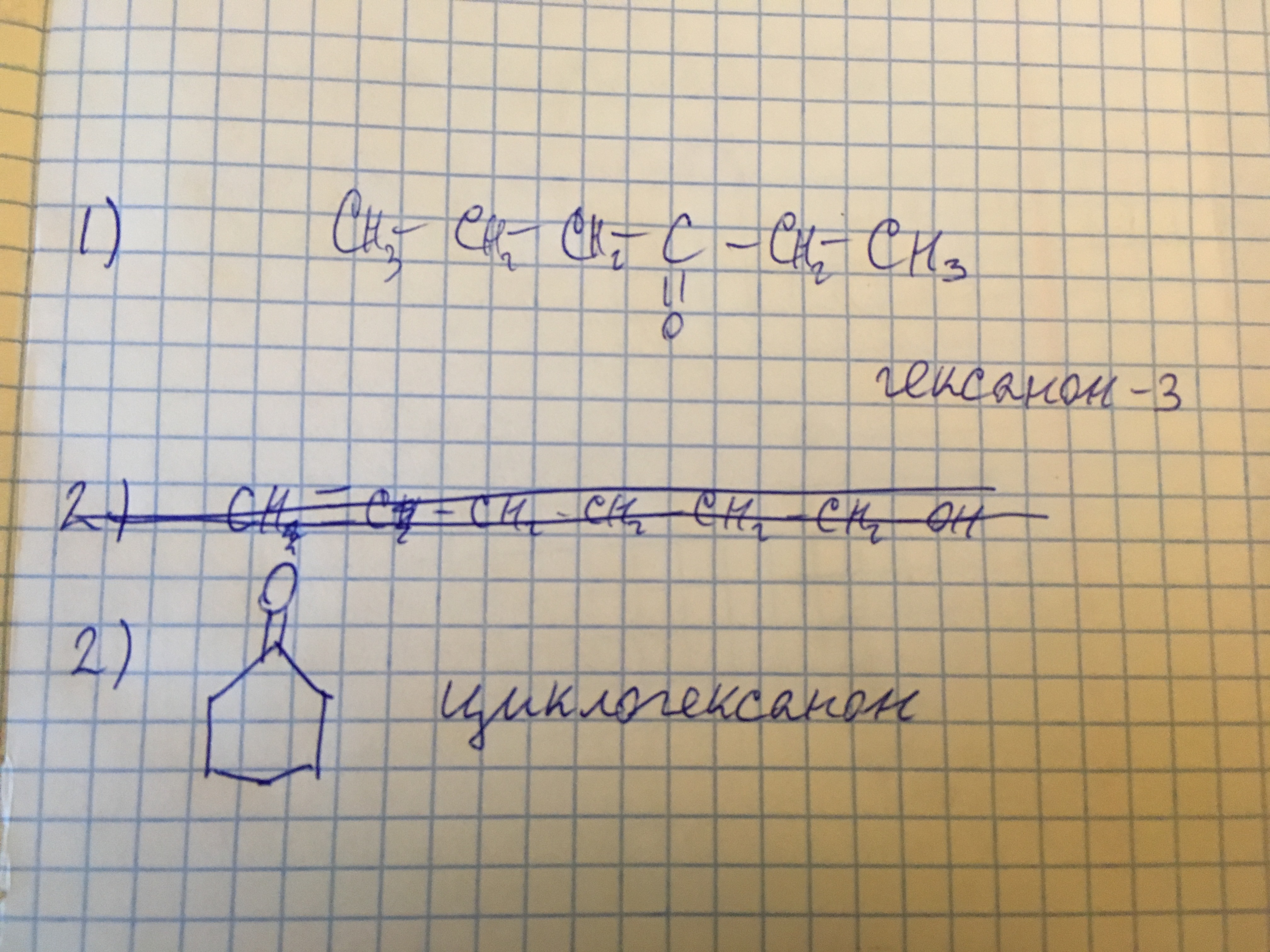 приведите структурные формулы двух веществ,и имеющих молекулярную формулу C6H10O. Назовите эти вещества по систематической номенклатуре, пожалуйста быстрее очень прошу