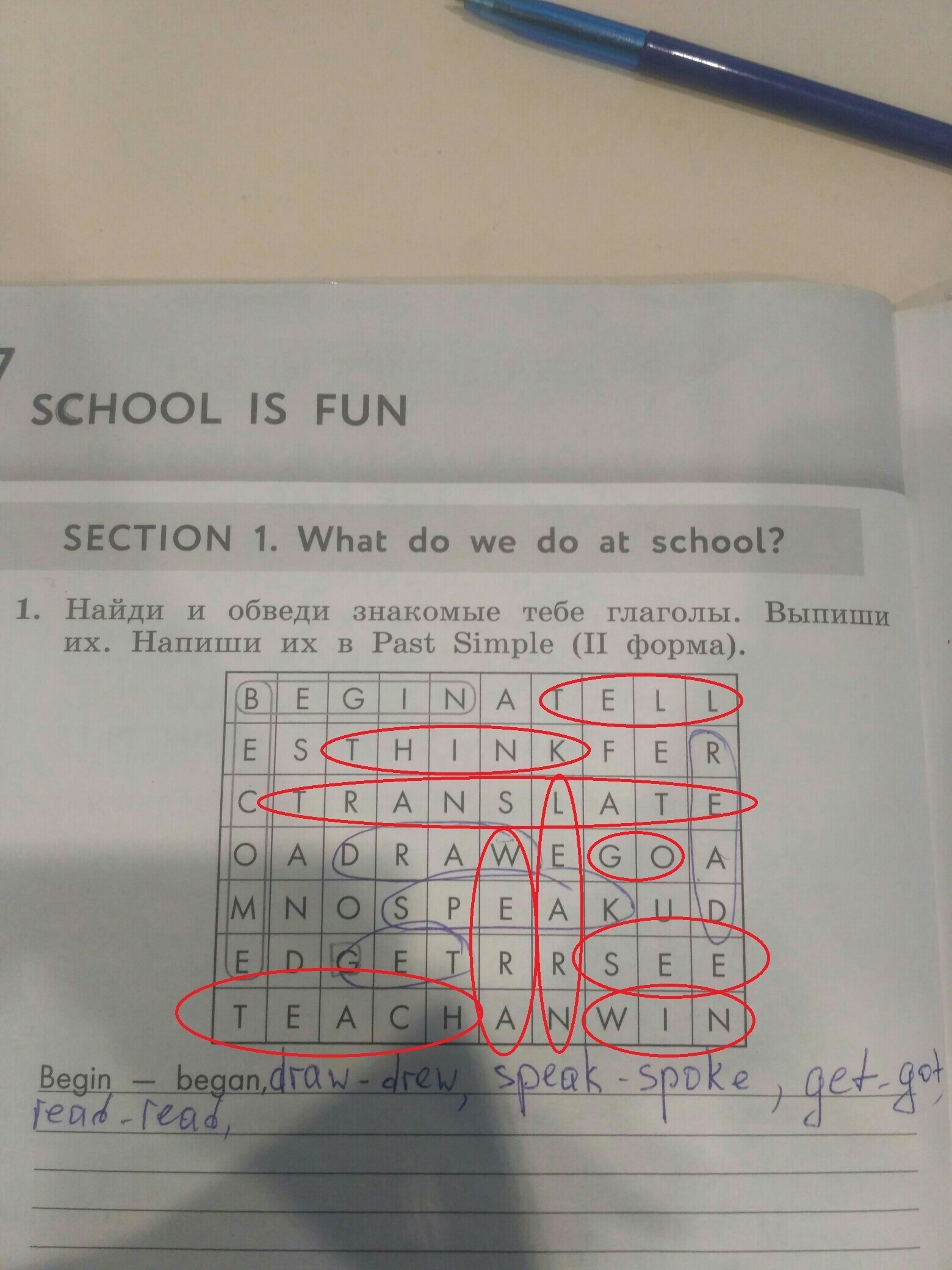 see - saw, teach - taught, think - thought, win -won, learn - learnt, go - went , become-became,tell-told ,translate - translated.Ну всё что могла найти