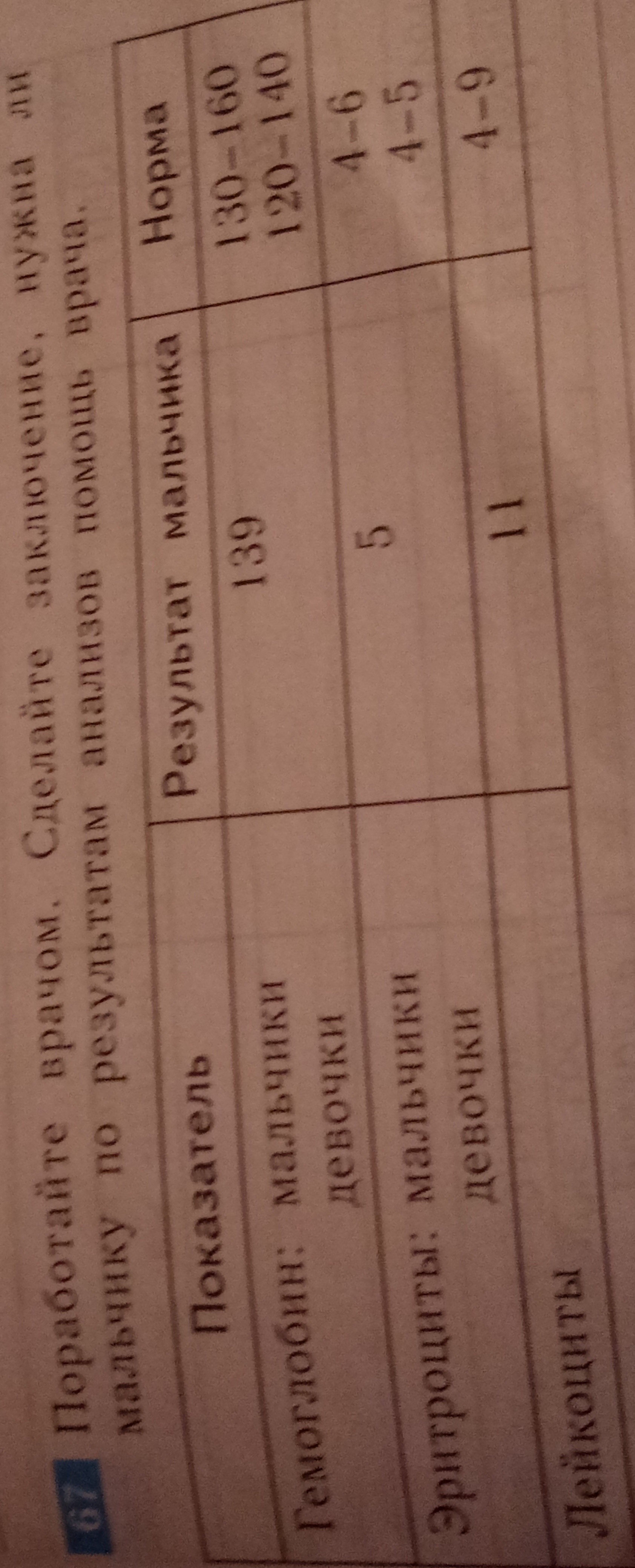 поработайте врачом сделайте заключение нужна ли мальчику по результатам анализов помощь врача показатель