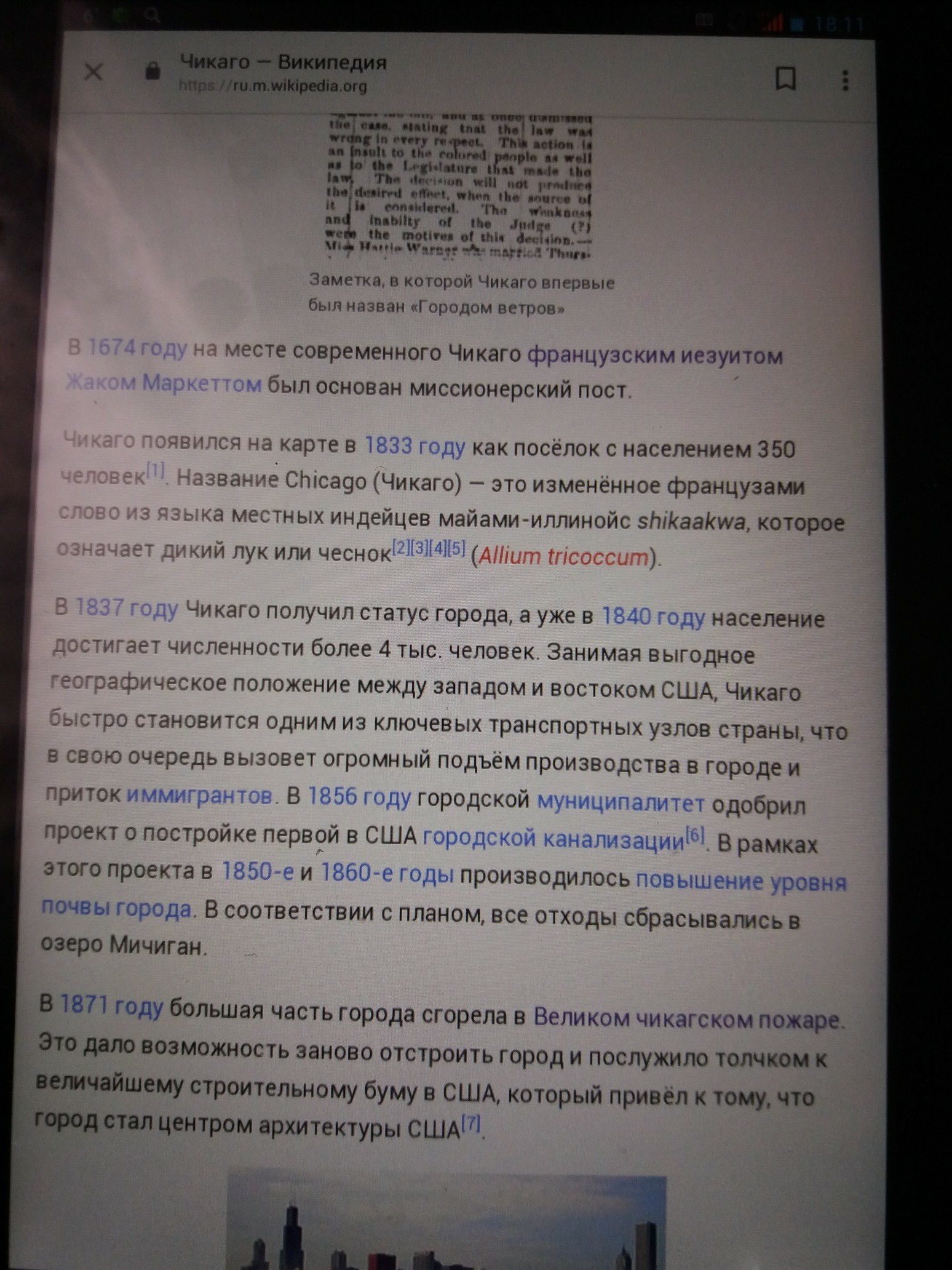 Chicago appeared on the map in 1833 as a settlement with a population of 350 people [1]. The name Chicago (Chicago) is a French word changed from the language of the indigenous Indians, Miami-Illinois shikaakwa, which means wild onions or garlic.