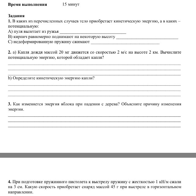 Сор по физике 7 класс 4 четверть энергия. Помогите пожалуйста даю 25 балов!