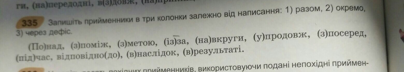 окремо; з поміж з метою з посеред під час відповідно до в результаті