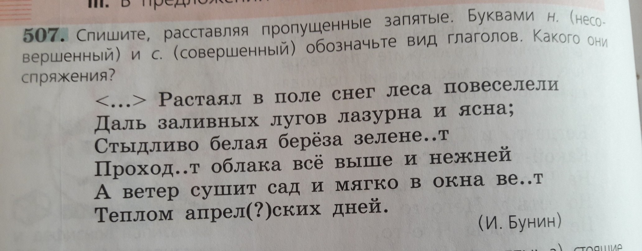 Спишите, раставляя пропущенные запятые. Буквами н. (несовершенный) и с (совершенный) обозначьте вид глаголов. Какого они спряжения?