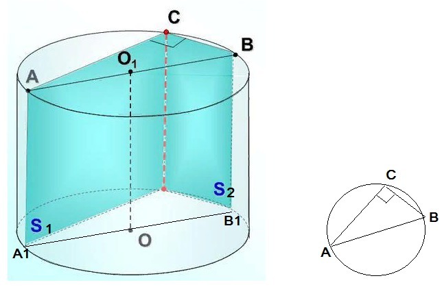 AB является диаметром окружности, по свойству вписанного угла: если вписанный угол равен 90°, то он опирается на диаметр окружности.