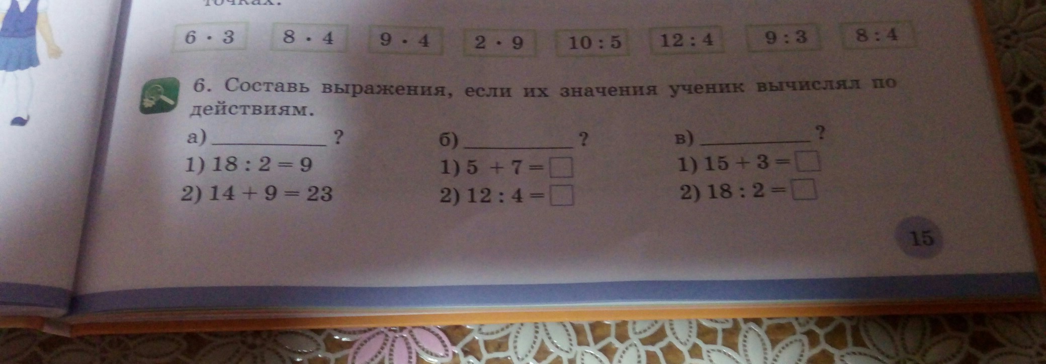 (18:2)+14=23. (5+7):4=3. (15+3):2=9.