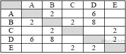 Между населёнными пунктами A, B, C, D, E построены дороги, протяжённость которых (в километрах) приведена в таблице.